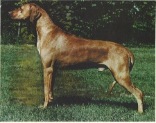 “The best male Ridgeback that I have ever bred. He was large, well balanced and had perfect conformation. He had the type of hocks that are lacking in the breed today. A Wonderful specimen of the breed.”